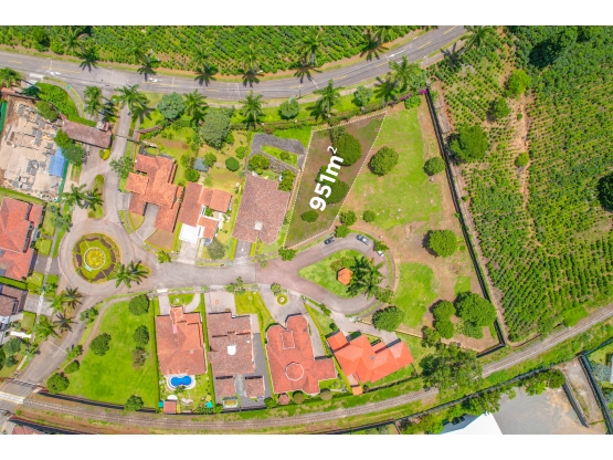 Ubicado en el prestigioso Condominio Roble Sabana dentro de Colinas de Montealegre, este terreno de 951 m² ofrece una excelente oportunidad para construir la casa de tus sueños en un entorno de lujo y tranquilidad. La topografía del terreno es inclinada, lo que permite un diseño arquitectónico único y aprovechable, con vistas espectaculares al Cerro La Carpintera y el Valle Central. El condominio cuenta con seguridad 24/7, calles adoquinadas y electrificación subterránea, garantizando un entorno seguro y estéticamente impecable. Además, su ubicación estratégica te coloca a pocos minutos de centros comerciales, colegios privados de alto prestigio y centros de salud, brindando la comodidad de tener todo lo que necesitas al alcance de la mano. No dejes pasar esta oportunidad de vivir en un condominio de lujo que combina naturaleza, confort y seguridad en un solo lugar.